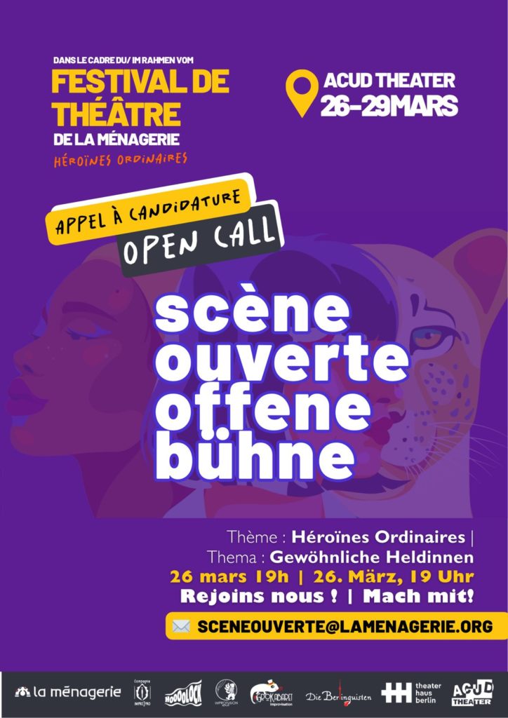 Der Improvisationstheater-WorkshopEinführung in das engagierte Long Form: Improvisieren anhand von Erfahrungsberichten wird von Florence Fournier und Myriam Tarhouni von der Theatergruppe Impro2pro im Rahmen des Festivals von La Ménagerie „Gewöhnliche Heldinnen“ angeboten.